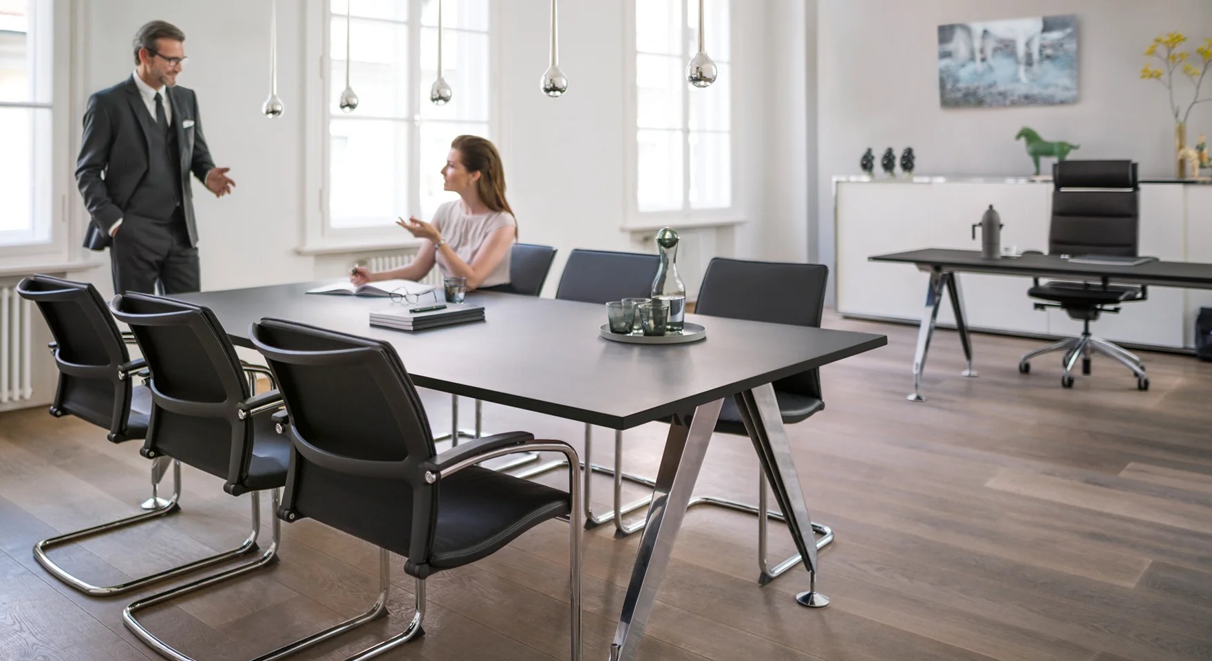 Repräsentativ, hochwertig, besonders: Überall dort, wo es um einen perfekten Eindruck geht, sind die Sedus invitation Konferenztische erste Wahl. Zum Beispiel in Konferenzräumen, die dafür genutzt werden, um Gäste und Geschäftspartner zu empfangen. Das Design und die Materialien sind so hochwertig, dass keinerlei Zweifel aufkommen: Hier stehen nicht nur Konferenzthemen auf der Agenda, sondern vor allem auch souveräner Stil.