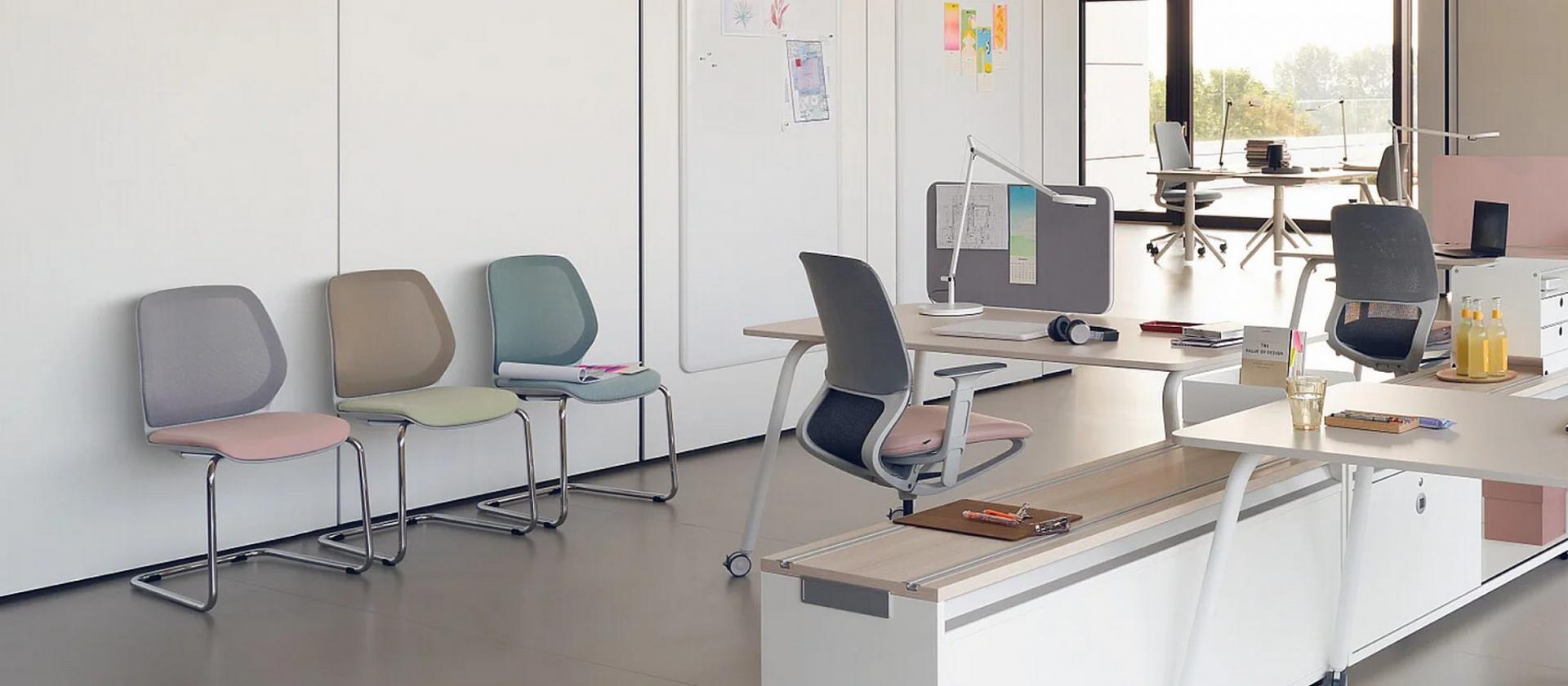 Besprechungsräume, Lounge- oder Wartebereiche: Der Besucherstuhl bringt Leichtigkeit mit, lässt sich hervorragend mit anderen Möbeln kombinieren und erfüllt genau die Anforderungen, die an ihn gestellt werden. Genau wie der Drehstuhl vermittelt auch der se:flex Besucherstuhl ein ergonomisches Sitzerlebnis: Die Sitzfläche ermöglicht eine optimale Druckverteilung, die Rückenlehne ist konkav geformt und mit einer Lordosenwölbung versehen.