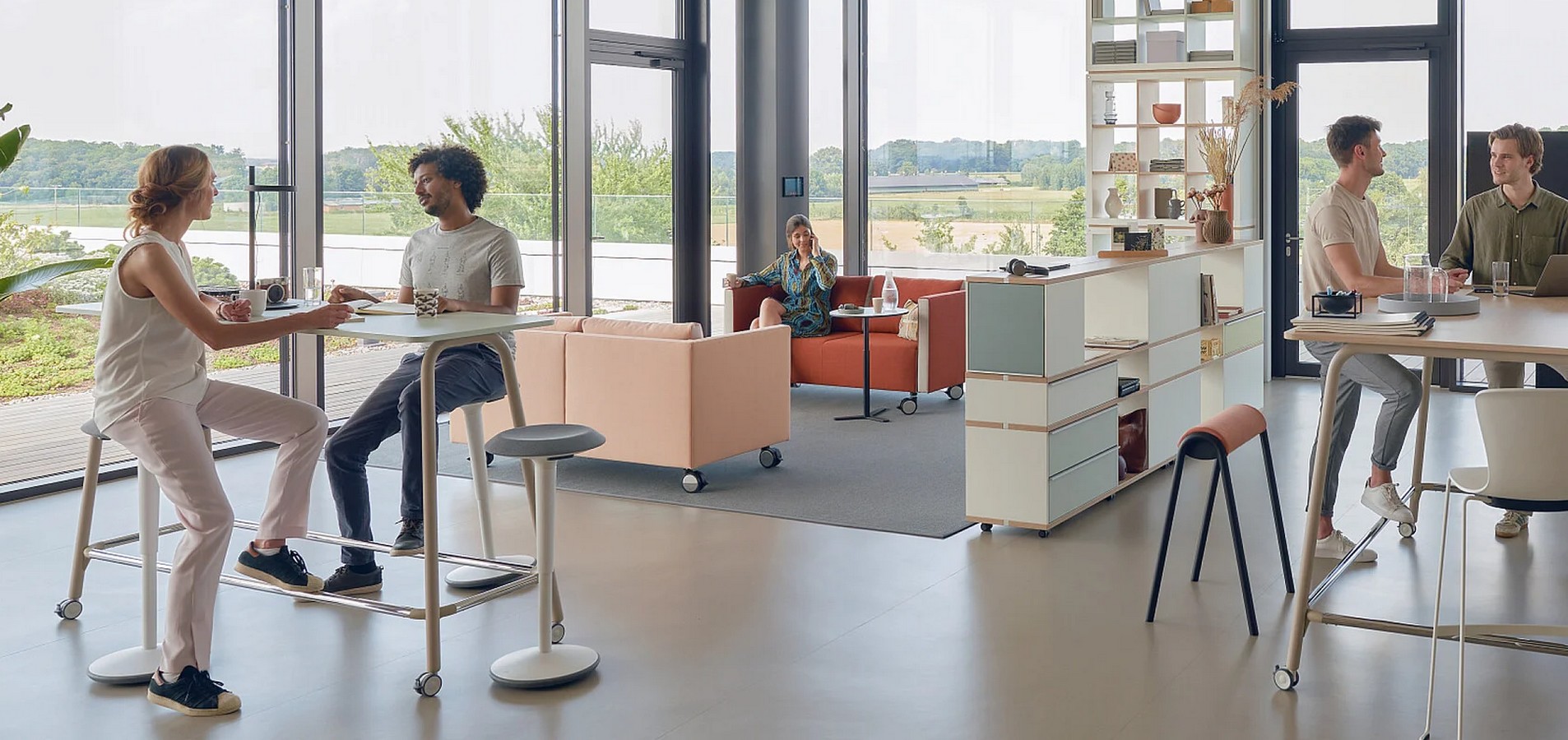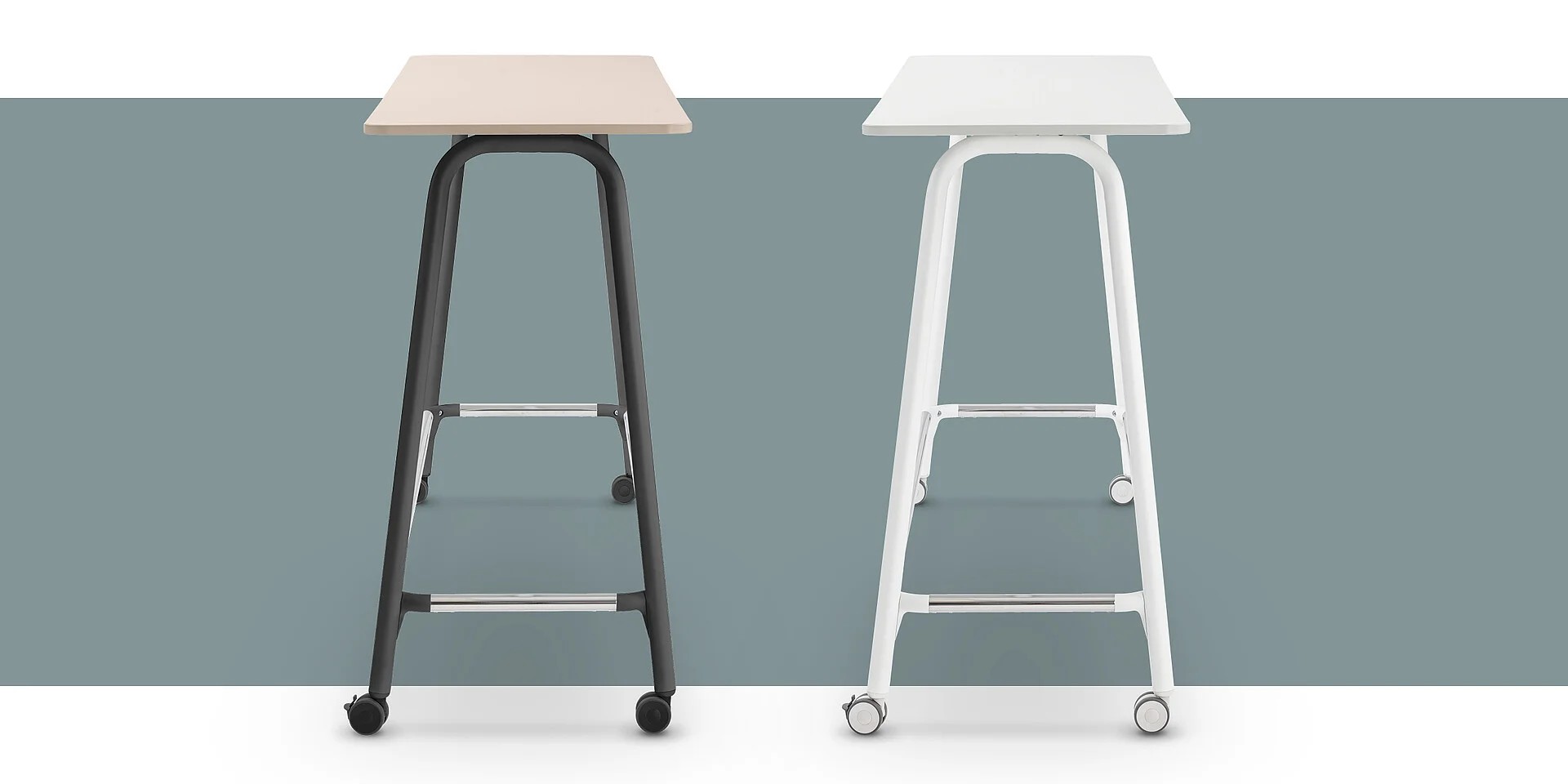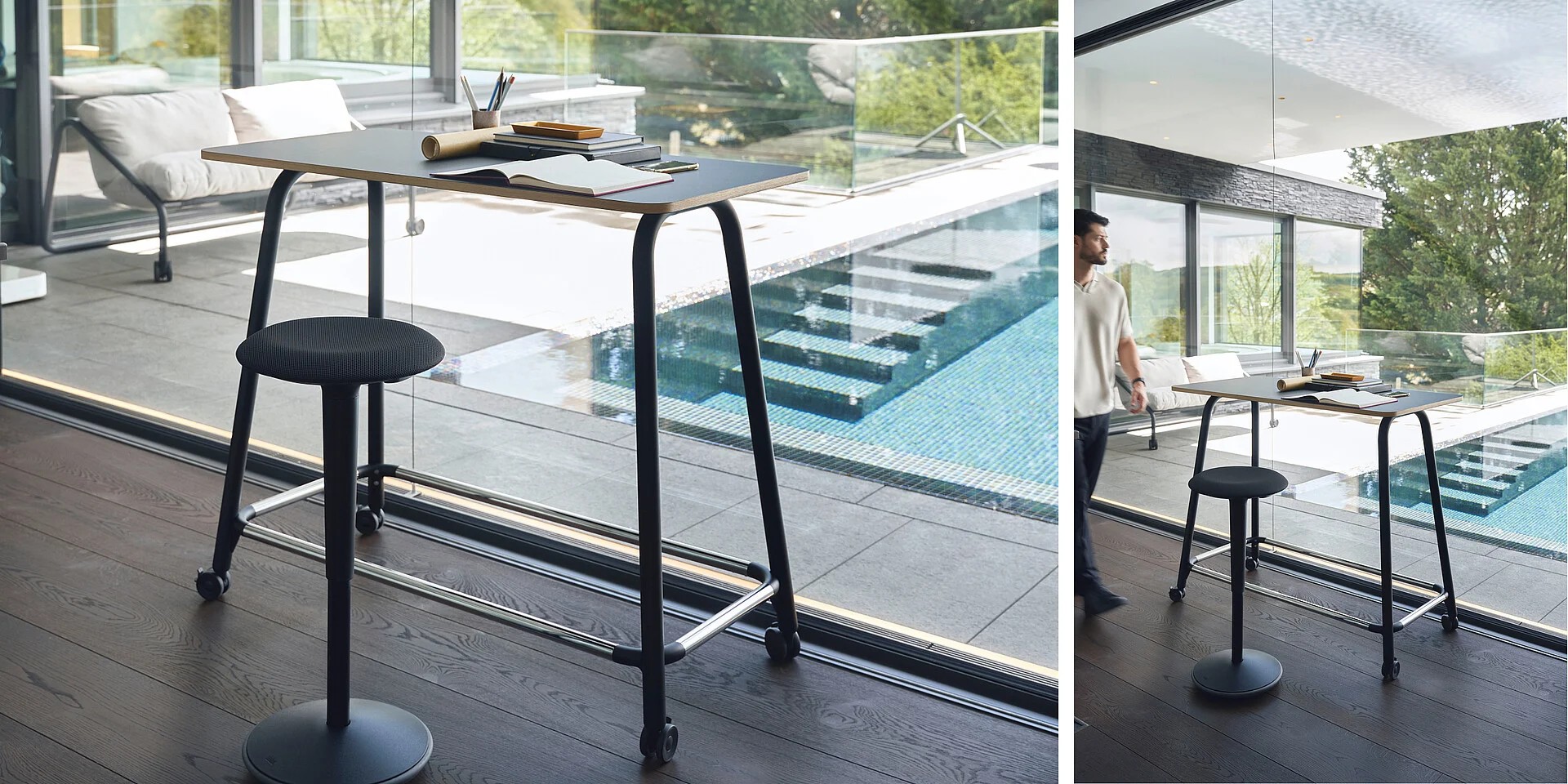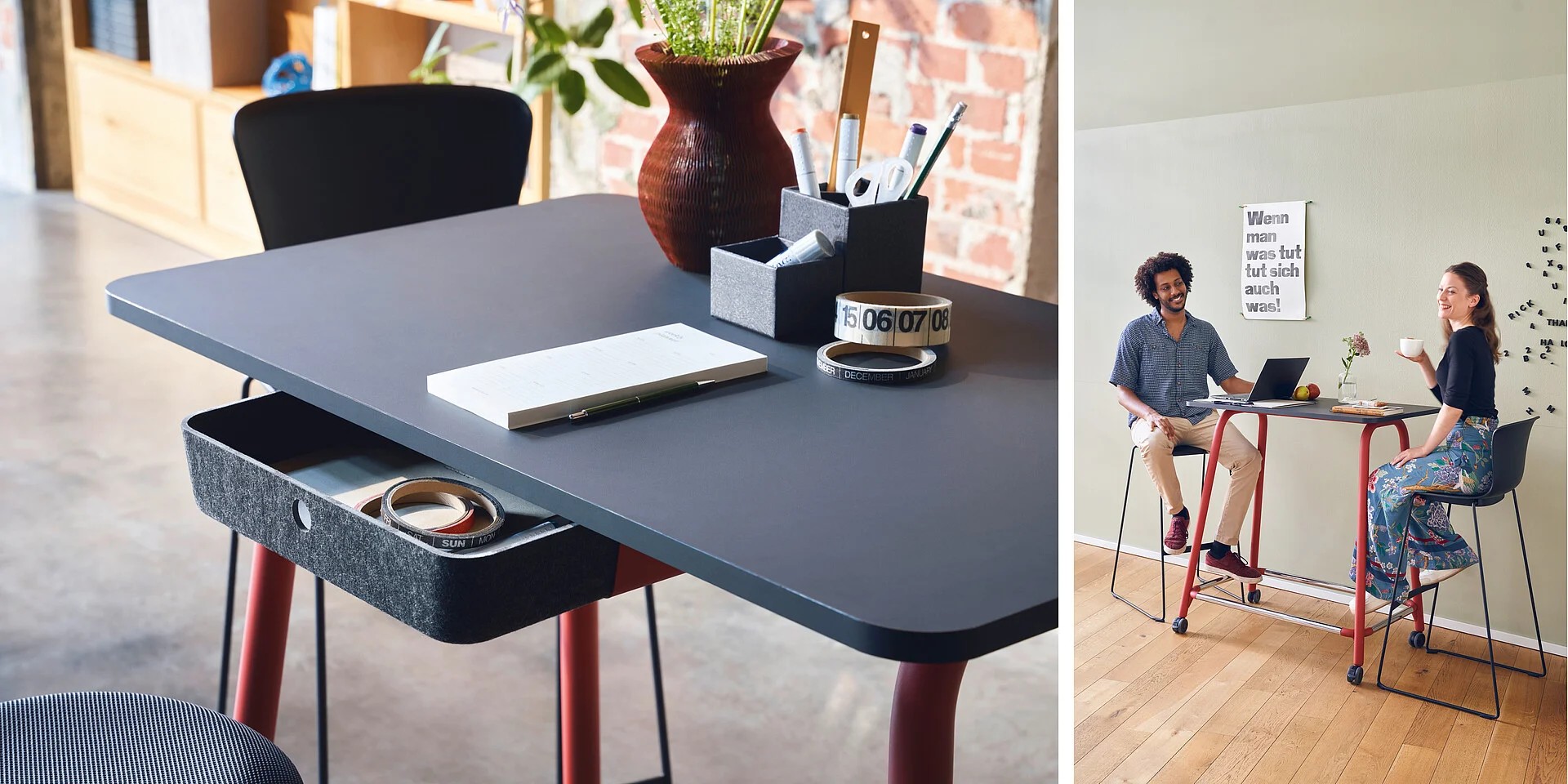 Dank der Ausstattung mit Rollen kann se:lab high desk unkompliziert umgestellt werden und ist damit perfekt geeignet für Anwendungen in Büro-Mittelzonen und Workcáfes.