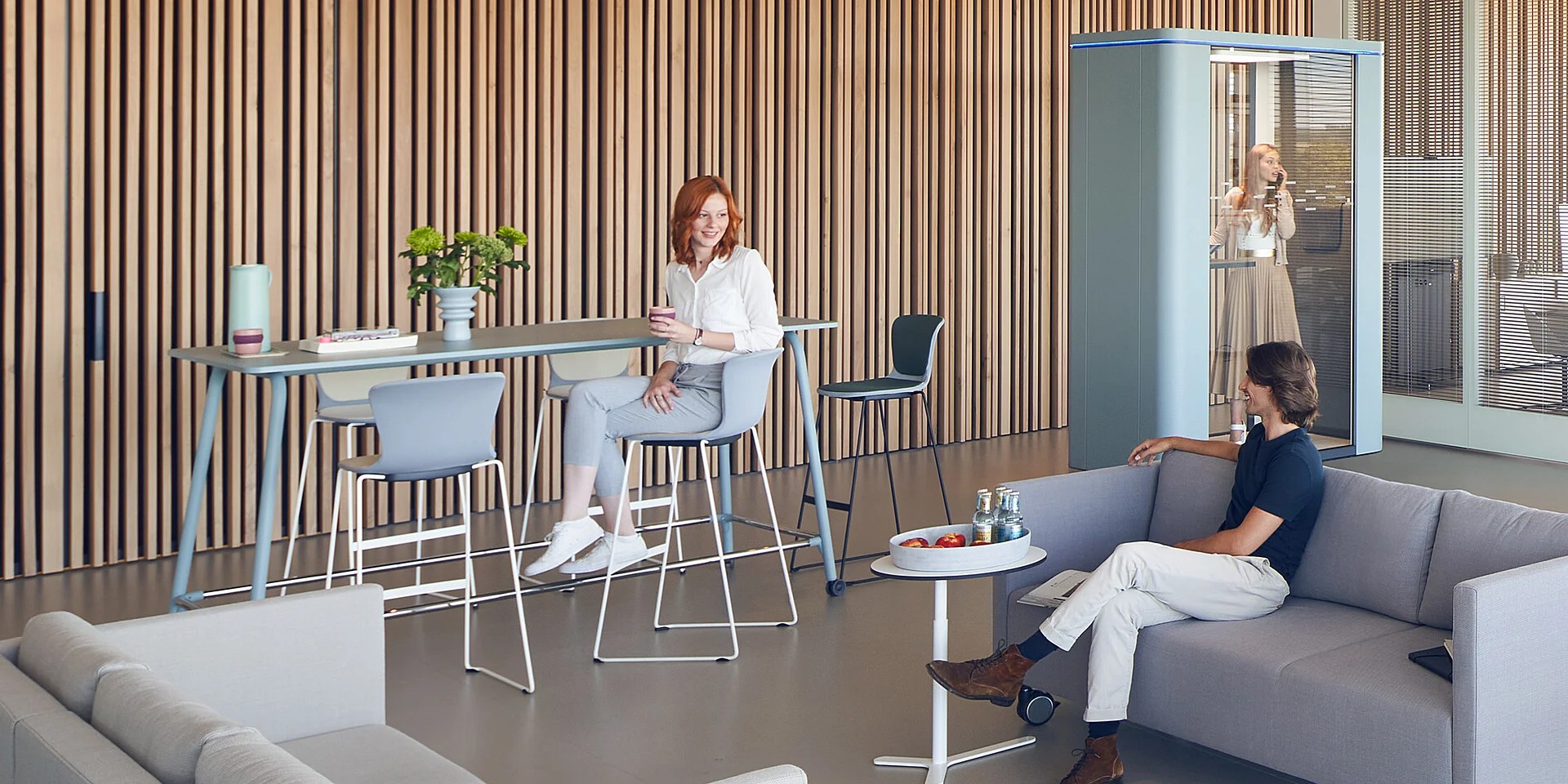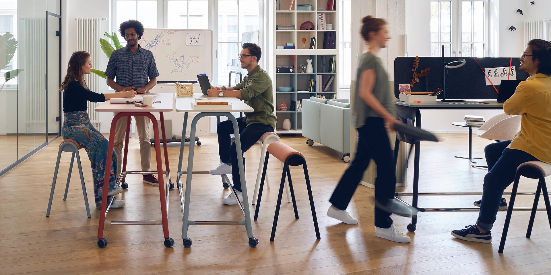 se:lab high desk vereint alle Vorteile des modernen Hochtischkonzeptes in sich: ideal für agile Teamarbeit oder als Treffpunkt für Kommunikation.