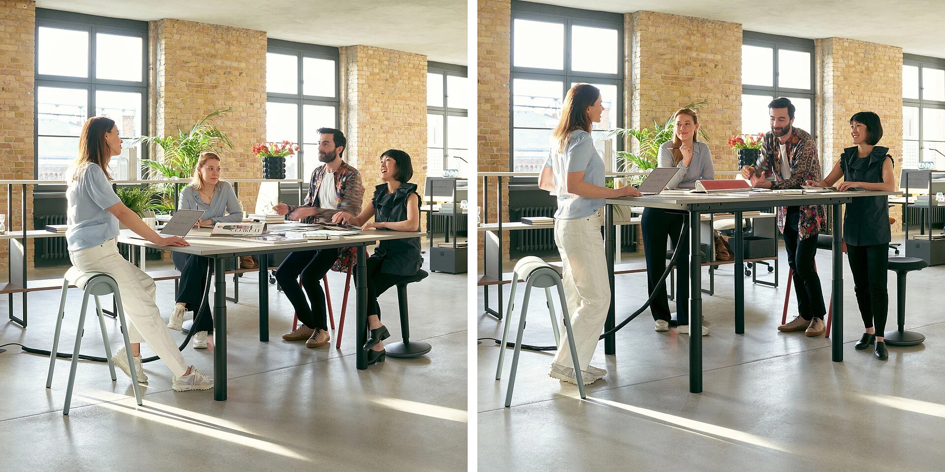 Bequem vom Sitzen ins Stehen wechseln – auch während der Besprechung oder des Meetings.