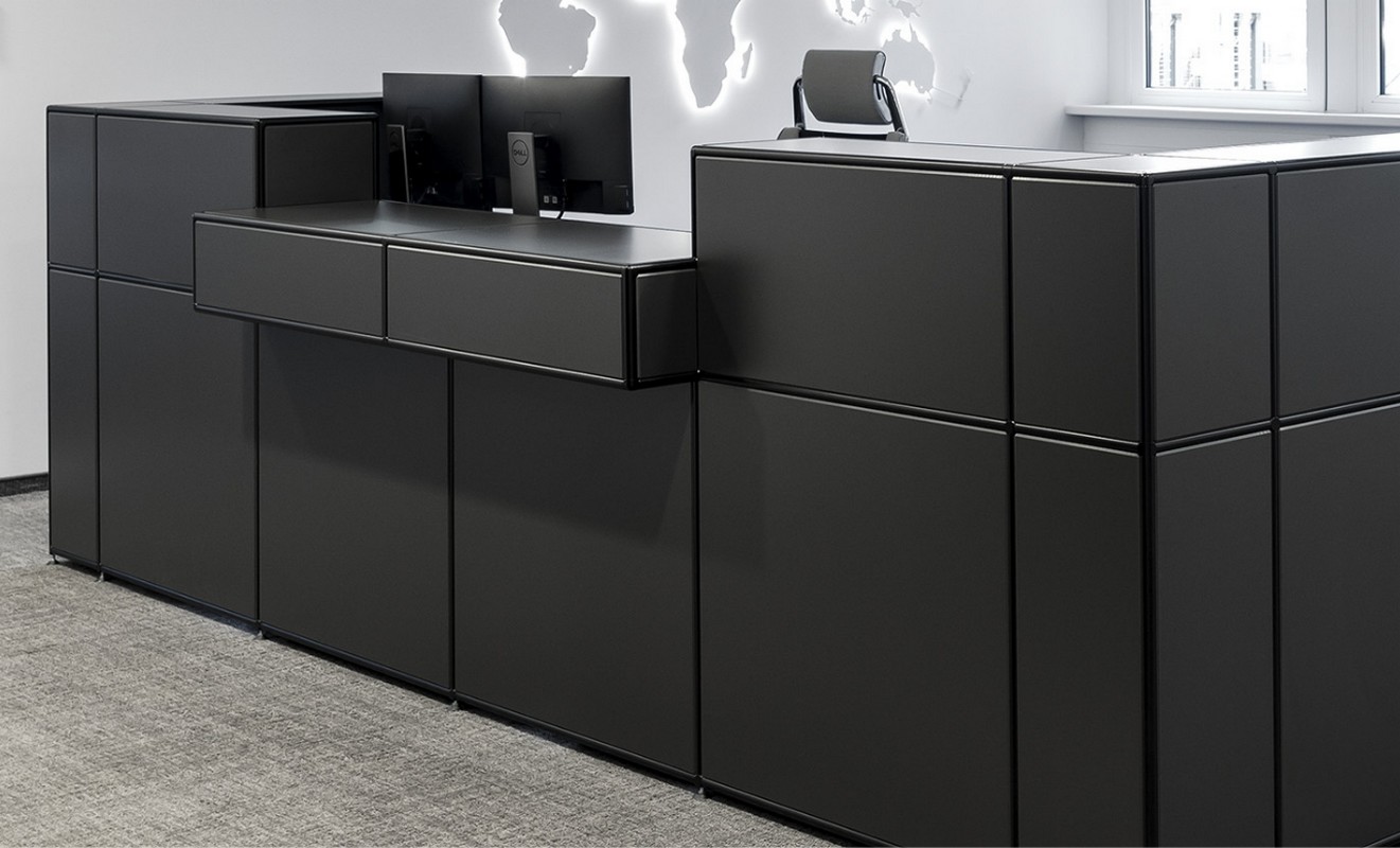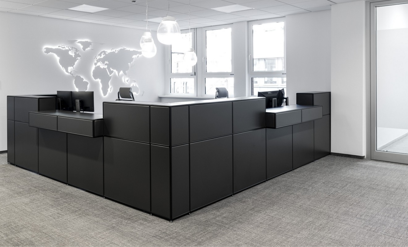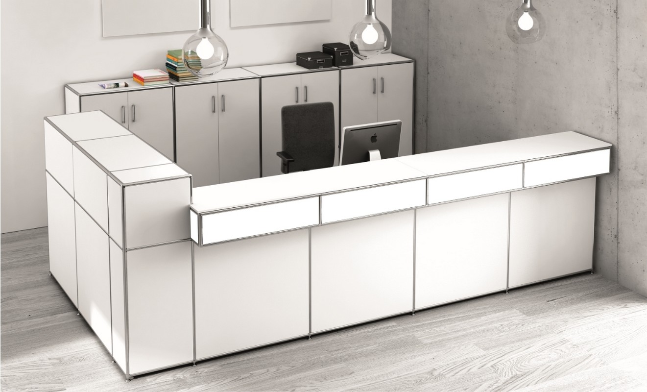 Mit unserem modularen System entstehen freistehende Empfangstheken, die sich elegant in Ihre Räume einfügen. Ihre Theke wählen Sie auf Wunsch auch als Ecktheke, an welcher Sie Ihre Gäste oder Kunden an zwei Seiten Wilkommen heißen können.