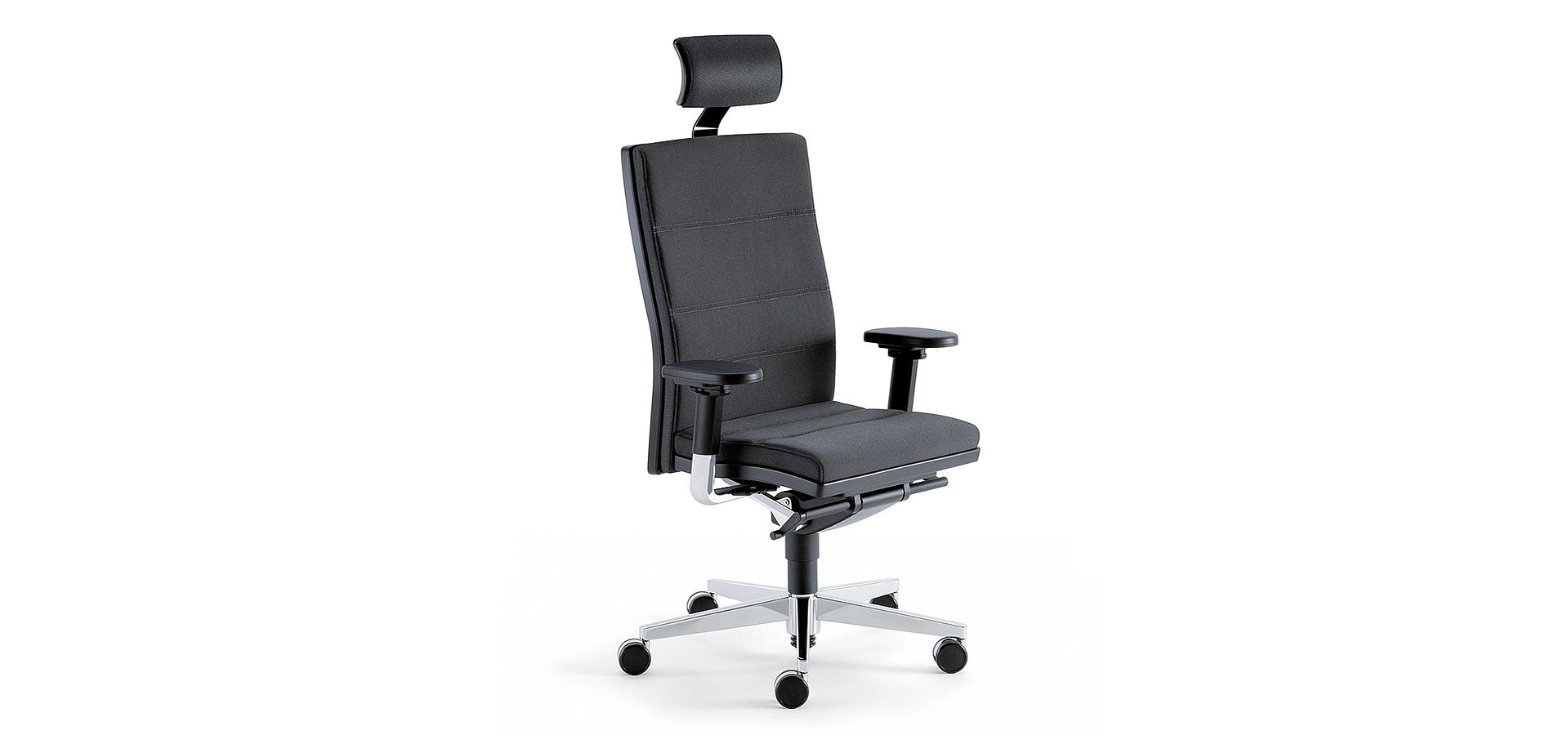 Bequeme Nackenstützen und optimal anpassbare Armlehnen runden den Komfort ab.