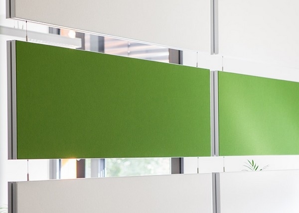 Die von der Decke abgependelten Akustikelemente sind beidseitig höchstabsorbierend und werden zur Zonierung und attraktiven Farbgestaltung von Büroflächen, sowie zur flexiblen Unterteilung von Räumen, eingesetzt. Sie sind in Reinwollfilz uni oder mit Motivdruck und in verschiedenen Rahmensystemen und Größen erhältlich. Die Breitbandabsorber, mit besten Absorptionseigenschaften im mittleren und hohen Frequenzbereich, sorgen für eine komfortable Raumakustik.