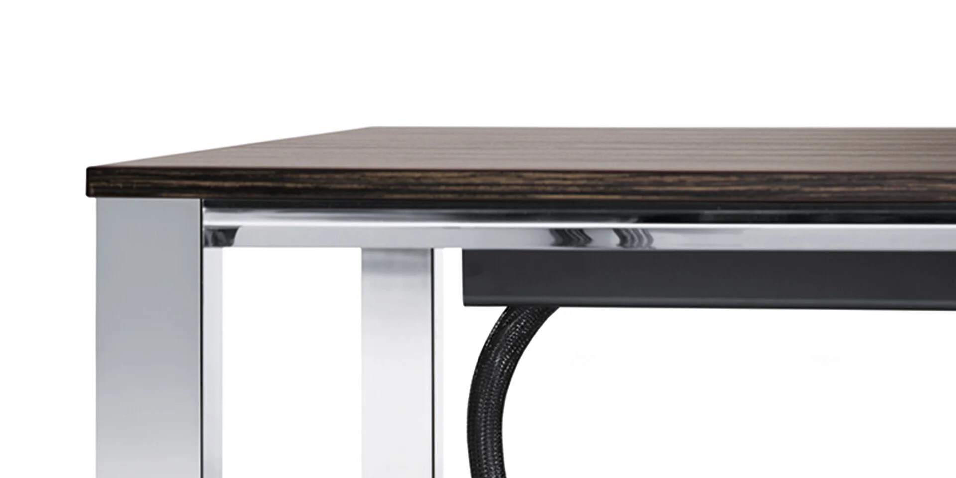 Mit den temptation prime Konferenztischen fällt es nicht schwer, hier zu glänzen. Denn die edlen Materialien, die schlanke Tischplatte und die massiven Fußelemente mit quadratischem Querschnitt sprechen eine deutliche Sprache: Hier steht Souveränität, Verbindlichkeit und Stil auf der Agenda. Die repräsentative Linienführung des temptation prime macht Eindruck – ebenso wie die durchdachte Funktionalität, die für reibungslose Abläufe sorgt.